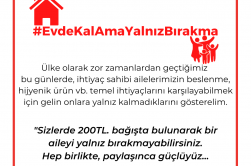 “Sizlerde 200TL. bağışta bulunarak bir aileyi yalnız bırakmayabilirsiniz. Hep birlikte, paylaşınca güçlüyüz… “